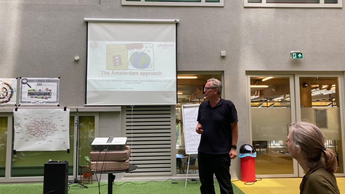 “We zagen het eigenlijk pas toen we in dit Europese consortium zaten; we zijn hartstikke participatief. Dat is voor de andere betrokken steden zeer ongewoon. Wij hebben dit omgedoopt tot de ‘Amsterdam Approach’. Maar er is ook zoiets als participatiemoeheid. Juist de belofte van inspraak maar dat niet kunnen waarmaken, zorgt ervoor dat mensen niet meer wíllen participeren. In de laatste fase van ons onderzoek, het City lab, gaan we onderzoeken hoe we het anders kunnen doen. Hoe kunnen we gedeeld eigenaarschap rondom het toerisme in Amsterdam faciliteren en creëren?” Hoe het anders kan, daarover praten de deelnemers na afloop van de presentatie direct al na. Verbindingen worden gelegd!
