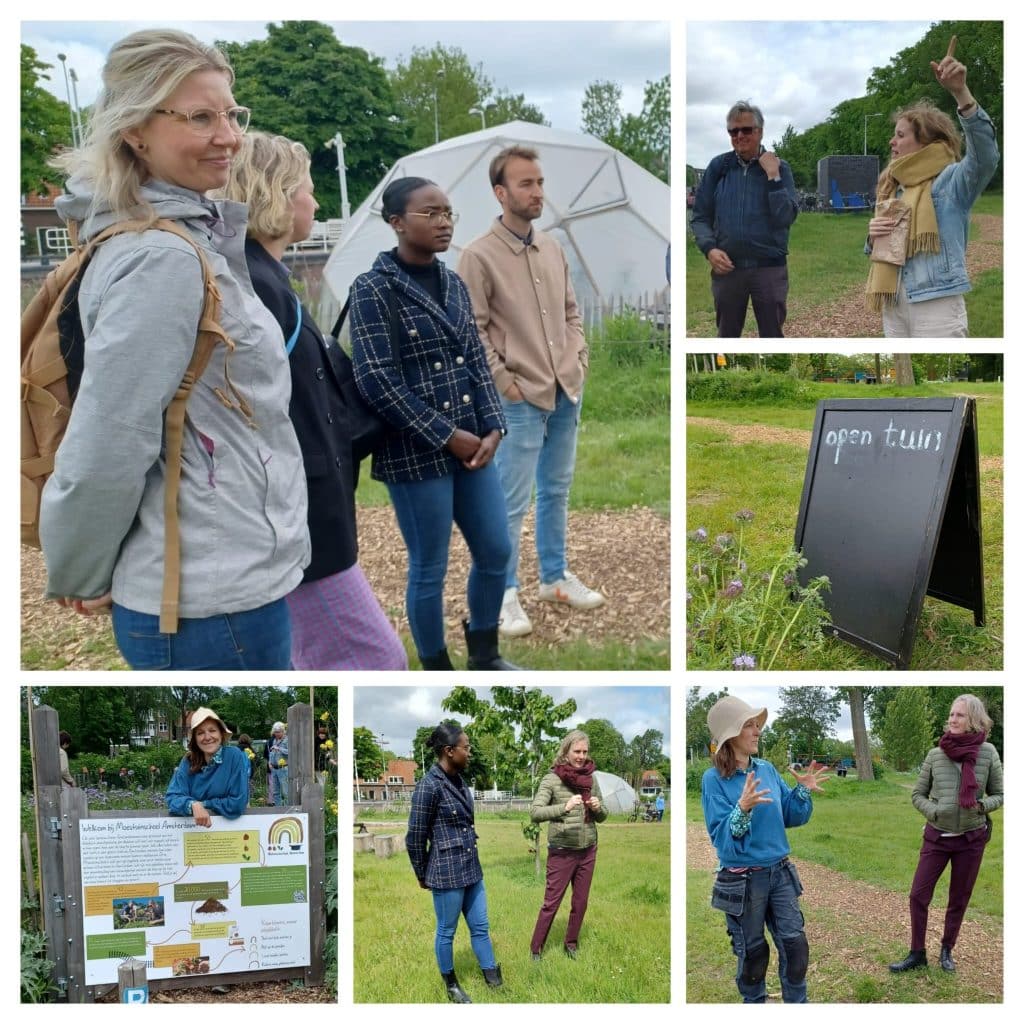 De dag werd geopend door Ko Koens, onze lector New Urban Tourism. Het was een enerverende bijeenkomst met vele (internationale) gasten en een mooi inhoudelijk programma waaronder verschillende rondleidingen in Amsterdam Noord bij onder andere de NDSM werf, de Ceuvel, de ADAM toren en het A-lab. In Sixhaven heeft een groep de Moestuinschool Amsterdam bezocht, waar volwassenen de kunst van biologisch tuinieren leren. Merijn van de Reep en Frederique Huls van STIPO hebben toegelicht voor welke uitdagingen zij staan als placemakers in Sixhaven. Aansluitend heeft lab lead Roos Gerritsma meer verteld over regenerative placemaking binnen het ULT lab Amsterdam, hoe gewerkt wordt met het quintuple helix model en hoe het lab samen met studenten met kleine interventies positieve impact probeert te maken. Onze afstudeerstudent Andromeda Achiaa liet bezoekers luisteren naar enkele verhalen, die binnenkort te beluisteren zijn via de QR codes op het verhalenbankje op het Buikslotermeerplein in Amsterdam Noord.