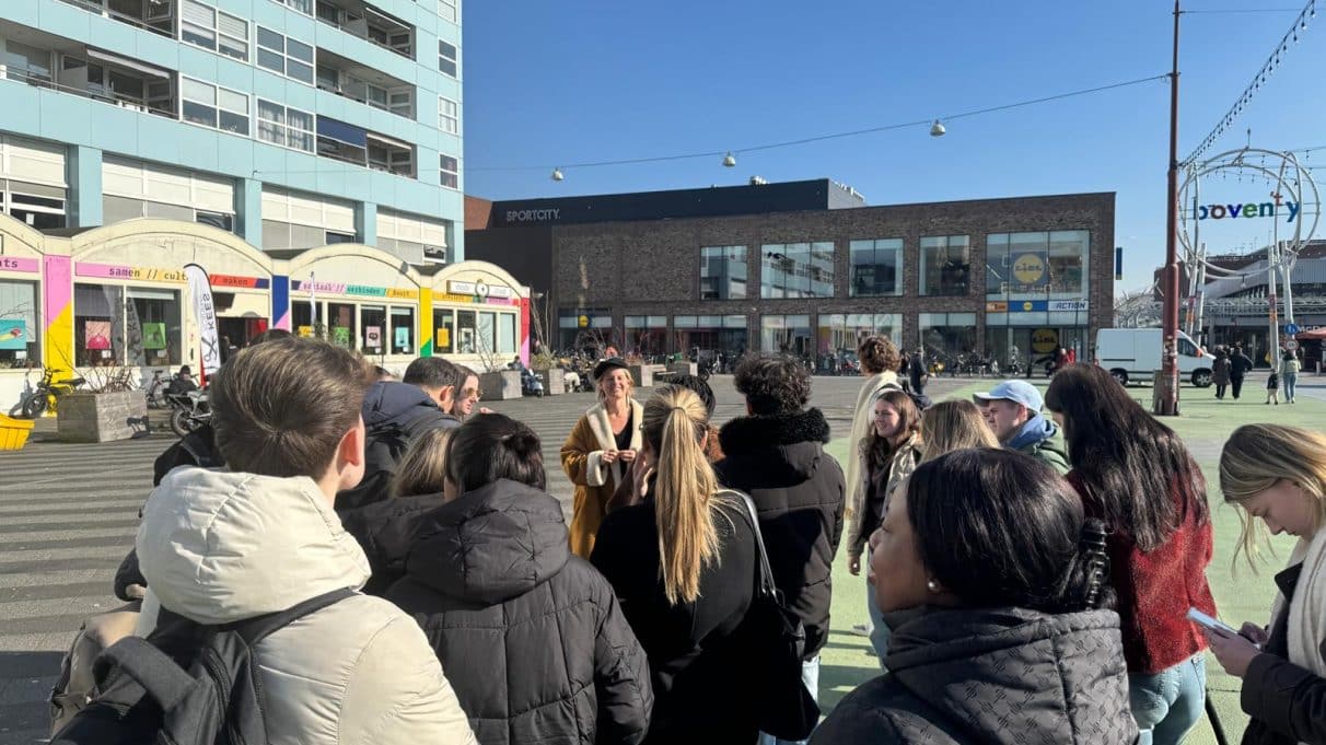 🎤 Maandag begon met een verdiepende Method Monday bij de DAT!school. Studenten deelden hun onderzoeksbevindingen via Miro en onderzochten hoe ze informatie effectief kunnen zoeken, vergelijken en delen onder toeziend oog van Roos Gerritsma. De kers op de taart? Een inspirerende gastlezing en mini-tour door Berber Hidma van Tours that Matter, waarbij we ontdekten hoe storytelling bijdraagt aan betekenisvolle en duurzame toeristische ervaringen in Amsterdam Noord, Buikslotermeerplein Amsterdam Noord.