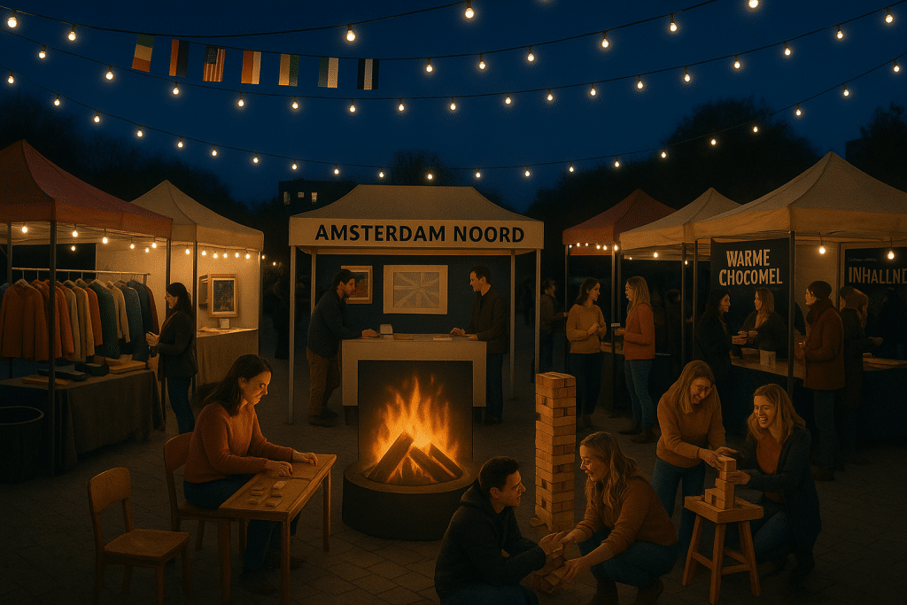 Op donderdag 4 december van 17.00 tot 21.00 uur verandert het plein in een levendig podium vol licht, ontmoeting en creativiteit. Tijdens de Avondmarkt & Projectie presenteren studenten van het ULT-lab hun creatieve concepten om het plein ’s avonds nieuw leven in te blazen — samen met buurtbewoners, makers en organisaties uit Noord.