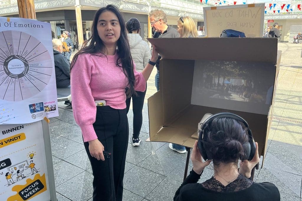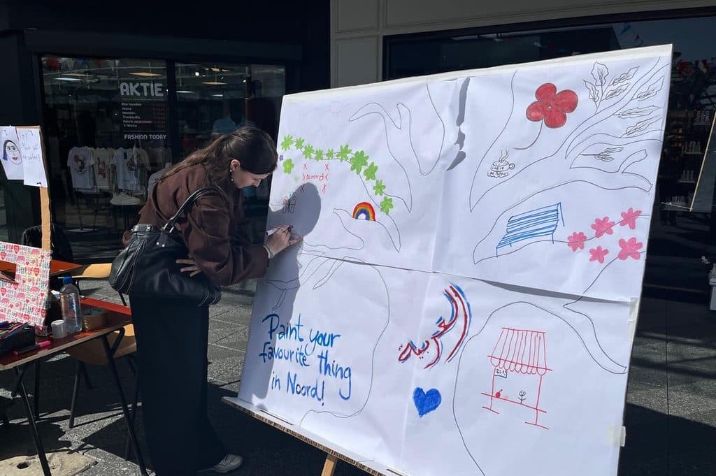 Hier gingen studenten in gesprek met bewoners, ondernemers en bezoekers van het Buikslotermeerplein – het kloppend hart van Noord. Concepten werden niet alleen gepresenteerd, maar vooral aangescherpt door echte feedback uit de buurt.