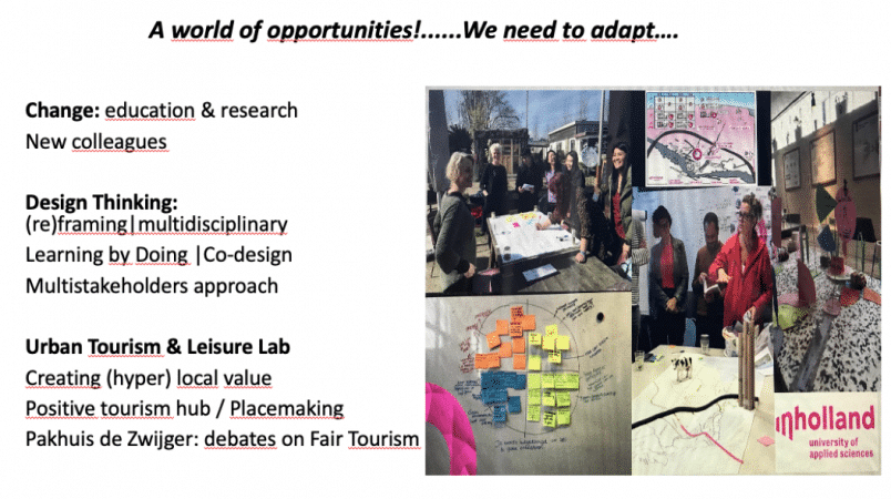 Er is – en zeker nu met Covid-19 – een grotere urgentie om toerisme te beschouwen als een praktijk waarmee we dergelijke veranderingen kunnen versnellen. Binnen het onderwijs van ons Domein Creative Business haken we daarop in, onder andere binnen ons lab. Op de 2e afbeelding zie je hoe we met diverse partijen deze duurzamere en inclusievere toekomst vormgeven.