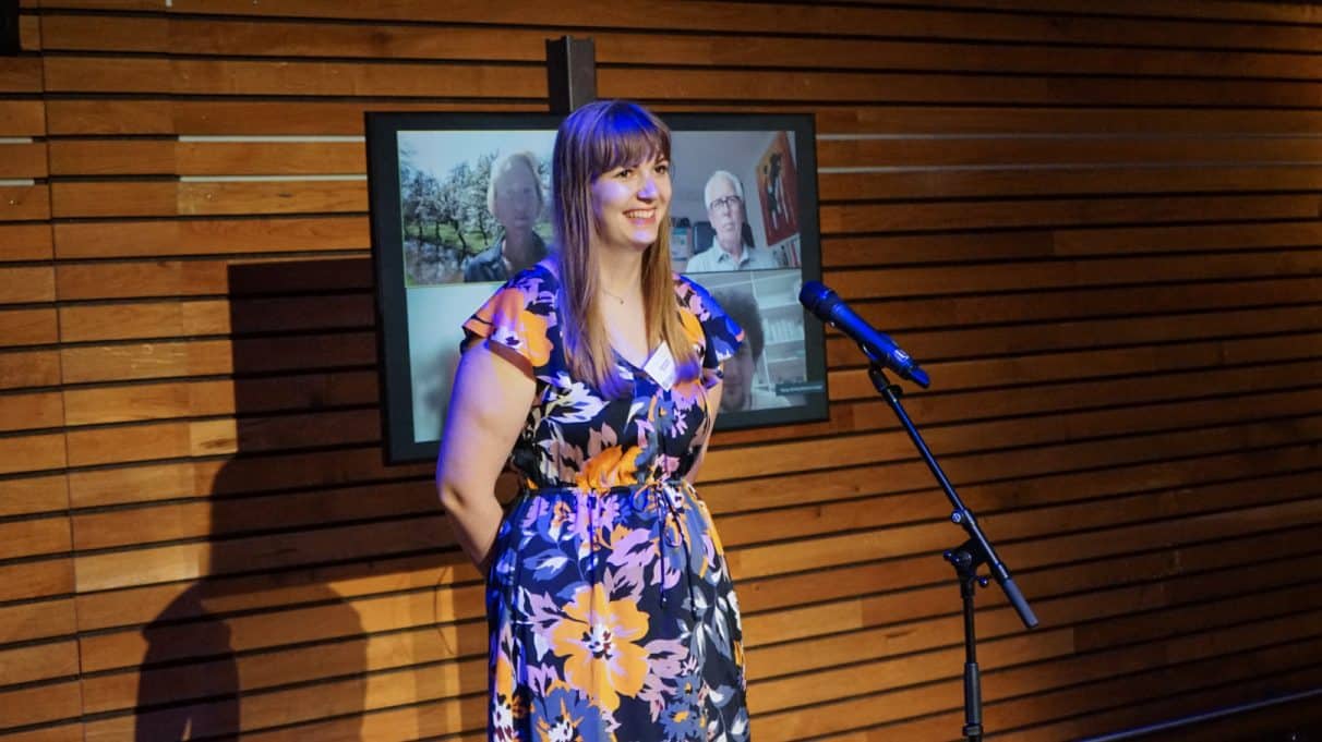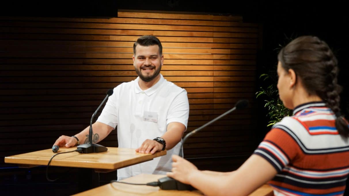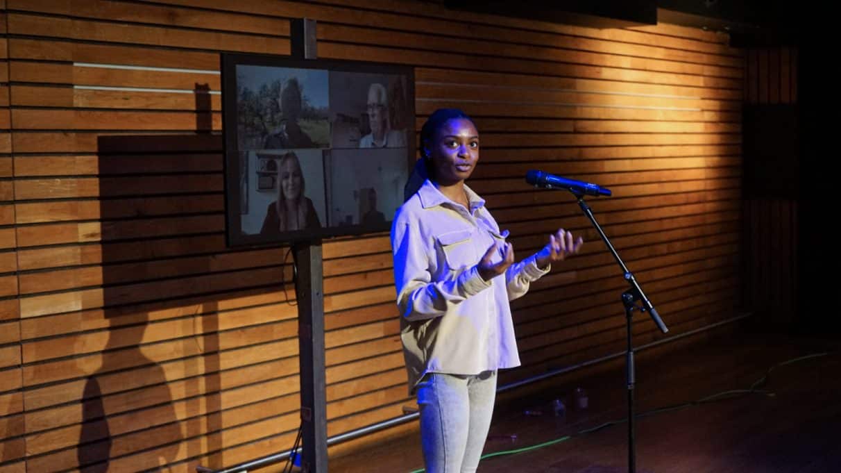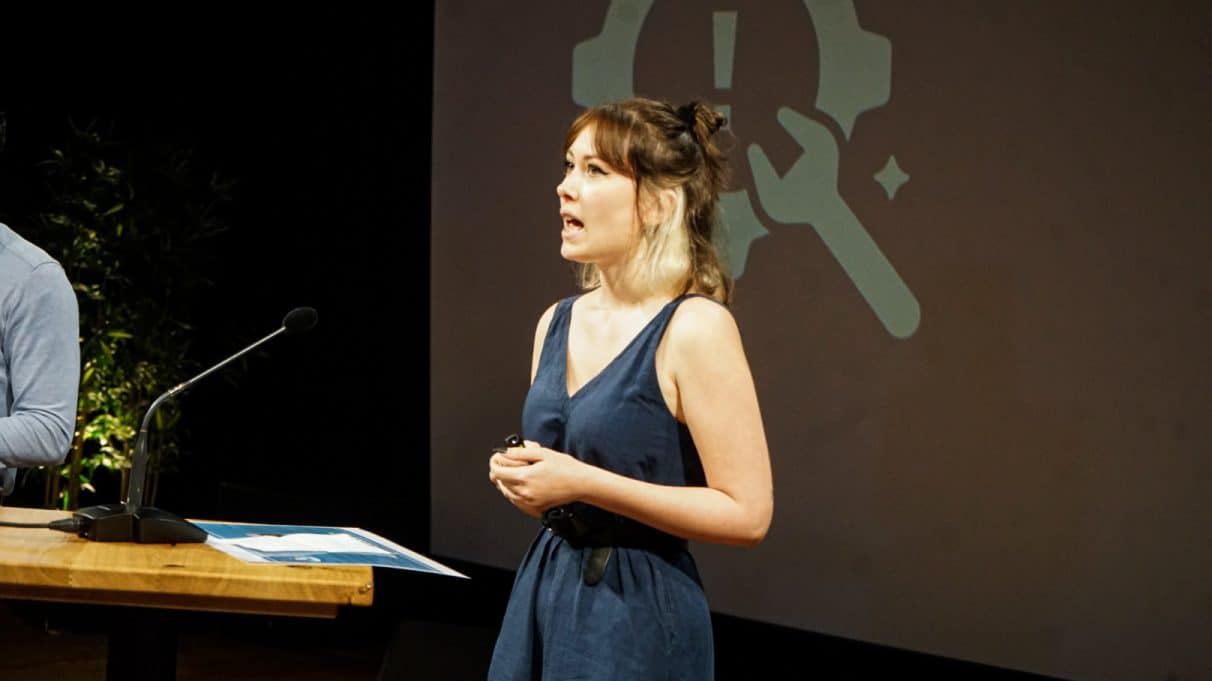 Elk team krijgt tien minuten podiumtijd voor het pitchen van hun concept, inclusief het prototype dat ze erbij gemaakt hebben en een ruwe begroting – zodat geïnteresseerden ook weten wat voor investering er van ze gevraagd wordt. Nu komt het erop aan: ze zullen de werkveldpartners over de streep moeten trekken om de plannen een concrete stap verder te brengen.